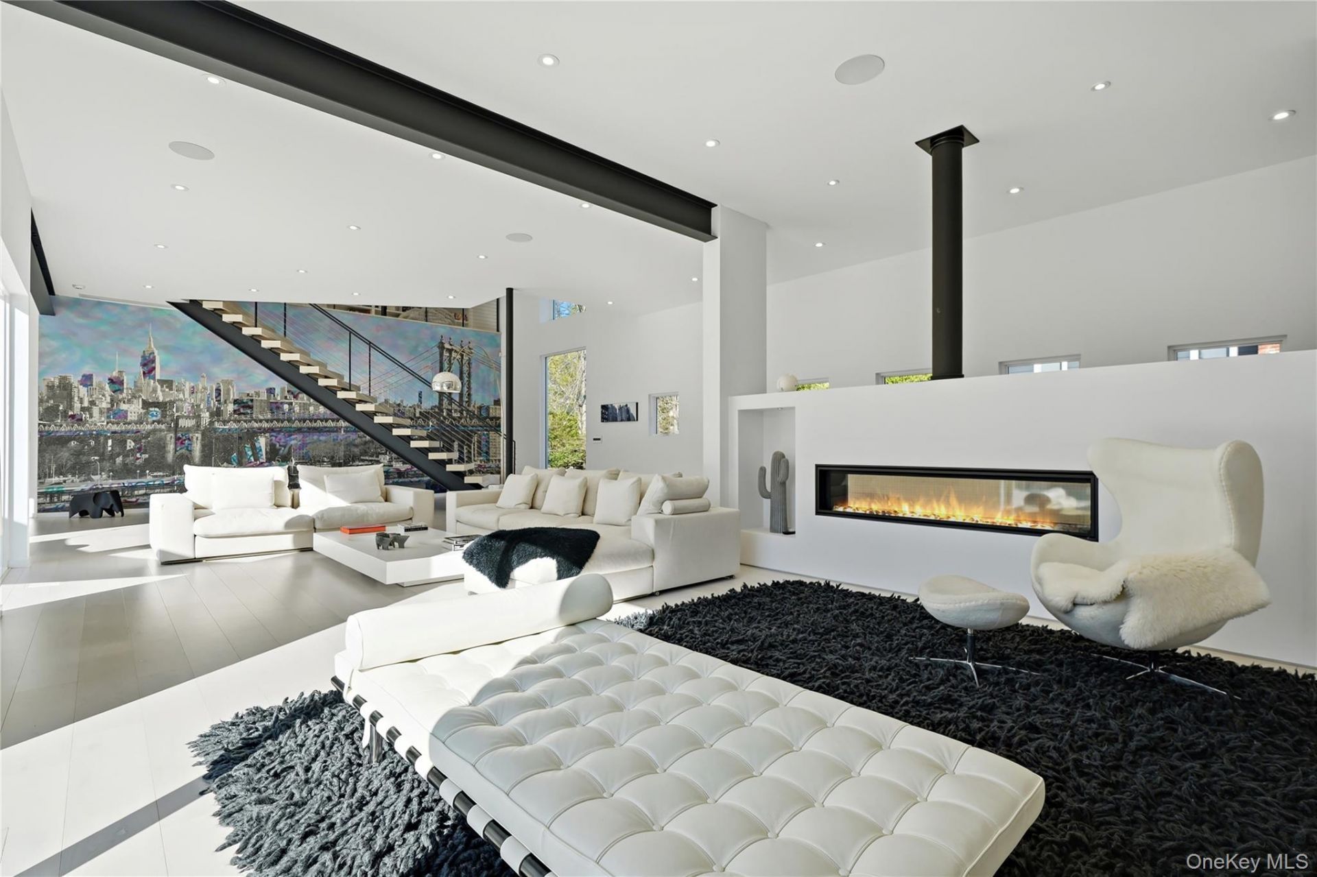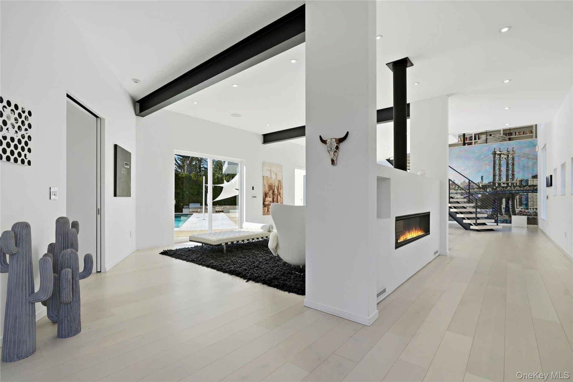 Tucked away on a private cul-de-sac and built in 2016, this striking ultra-modern residence offers a rare combination of clean architectural design, expansive living space, and exceptional outdoor amenities - all in a protected waterfront location.A dramatic entry introduces the home's open-concept layout, where walls of glass invite natural light throughout. The main level is thoughtfully designed for both everyday living and entertaining. To the right of the entry, a sleek living room with fireplace flows into a formal dining area and a stunning all-white chef's kitchen featuring premium Miele appliances and an oversized island. A bright breakfast area-ideal for casual dining, work, or study-opens to a comfortable family room with fireplace. A mudroom, laundry room, powder room, and access to the two-car garage complete this wing.To the left, versatility defines the space with a first-floor office or guest bedroom, an expansive media/family room with home theater, and direct access to the backyard. A dedicated pool bath/cabana enhances seamless indoor-outdoor living.Upstairs, the primary suite offers a peaceful retreat with a sitting area, private upper deck, generous walk-in closet, and a spa-inspired Porcelanosa bath with double vanity and walk-in shower. Additional highlights include an upstairs lounge/office, a large walk-in closet housing whole-house sound and alarm controls, and multiple spacious bedrooms-two with ensuite baths and others served by well-appointed hall baths.The outdoor setting is a true standout. Set on a large, private property, the home features a resort-style saltwater and heated pool and expansive yard-perfect for entertaining, relaxing, or play.Enjoy the ultimate coastal lifestyle with your own private waterside sitting area, dock, and direct water access-an exceptional offering that completes this one-of-a-kind modern home.
